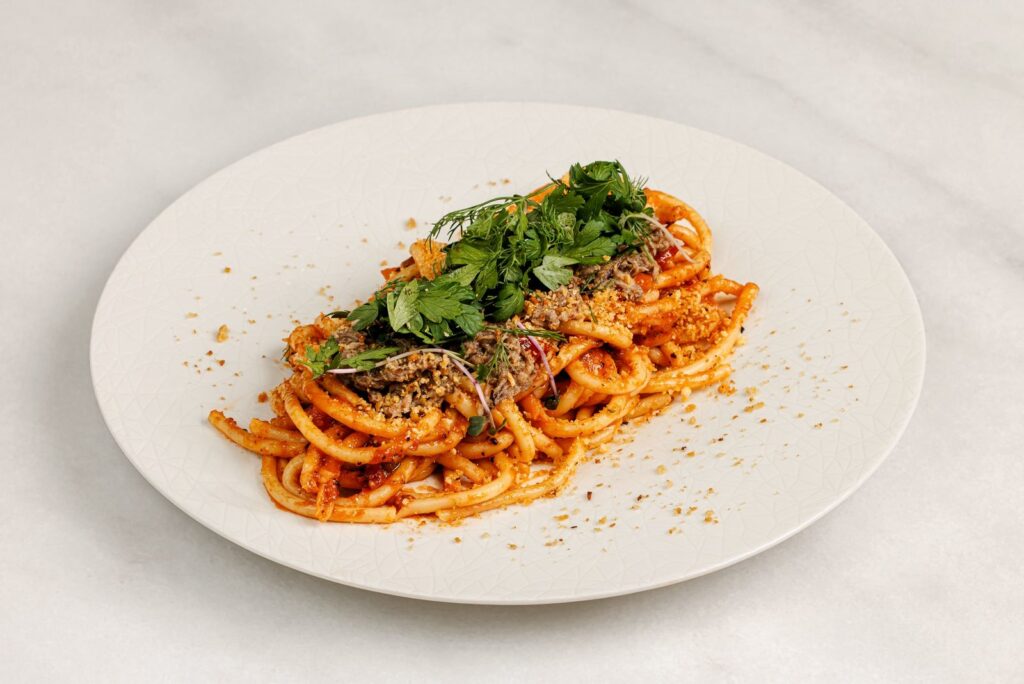 Pomidorlu buçatini parçalanmış ət ilə