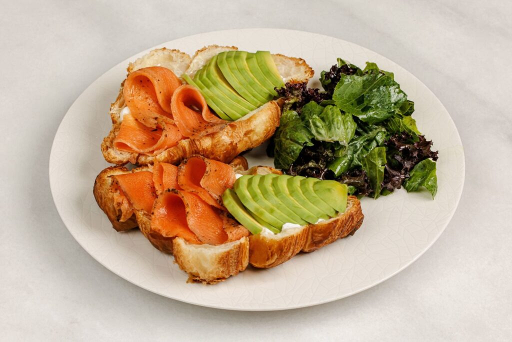 Kruasan qızıl balıq və avokado ilə