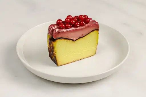 Çiyələk və püstə sousu ilə San Sebastian cheesecake