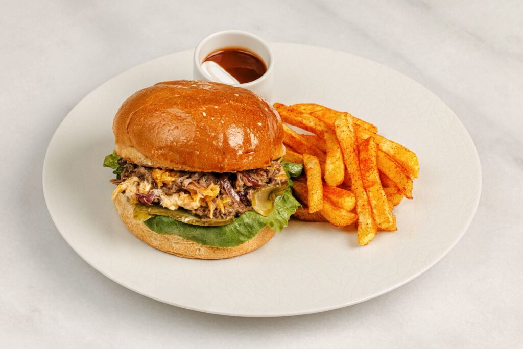 Sandwich with minced meat and truffle mayonnaise